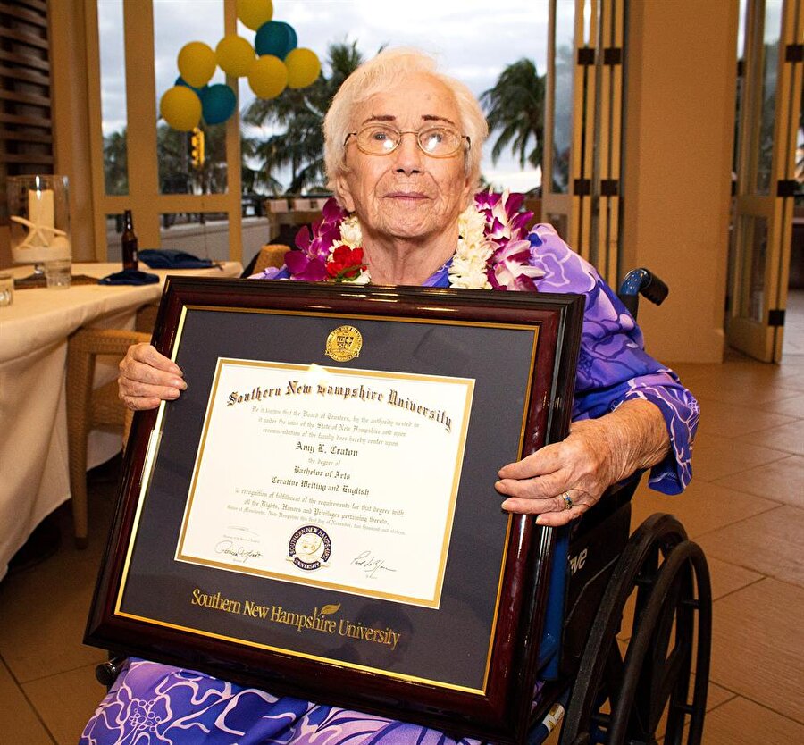 Hawaii Honolulu'da yaşayan 94 yaşındaki 4 çocuk annesi Amy Craton ayakta alkışlanacak bir davranışta bulundu. 54 sene önce üniversite eğitimini yarım bırakan kadın, en büyük hayaline kavuştu. Craton, online olarak ders alarak Southern New Hampshire University'den yaratıcı yazarlık ve İngilizce bölümlerini tamamladı.