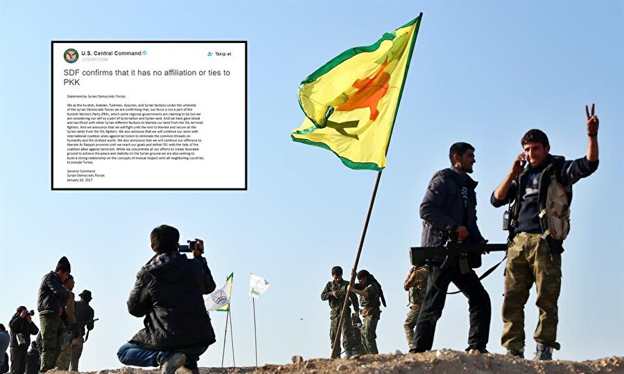 Söz konusu paylaşımında SDG'nin açıklamasının ekran görüntüsünü kullanan CENTCOM, açıklamanın üstüne de "SDG, PKK ile herhangi bir bağının veya ilişkisinin olmadığını onaylıyor" ifadelerine yer vererek PYD'nin "sözcülüğünü" yaptı.