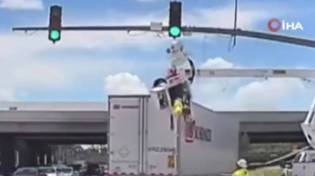 ABD'de akılalmaz kaza: Sepetli vinçte çalışan işçiye tır çarptı