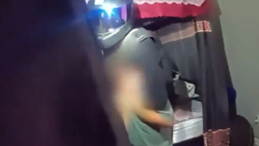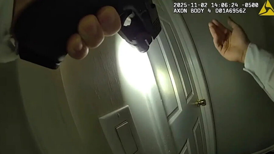 ABD'de bir kişi evde kardeşini bıçak zoruyla rehin aldı. İhbar üzerine olay yerine gelen polis ekipleri şahsı ikna etmeye çalıştı fakat başarılı olamadı. Bunun üzerine kapıyı kırarak odaya giren polis memuru şahsı kaskından vurarak öldürdü. O anlar ise polisin vücut kamerasına saniye saniye yansıdı.
