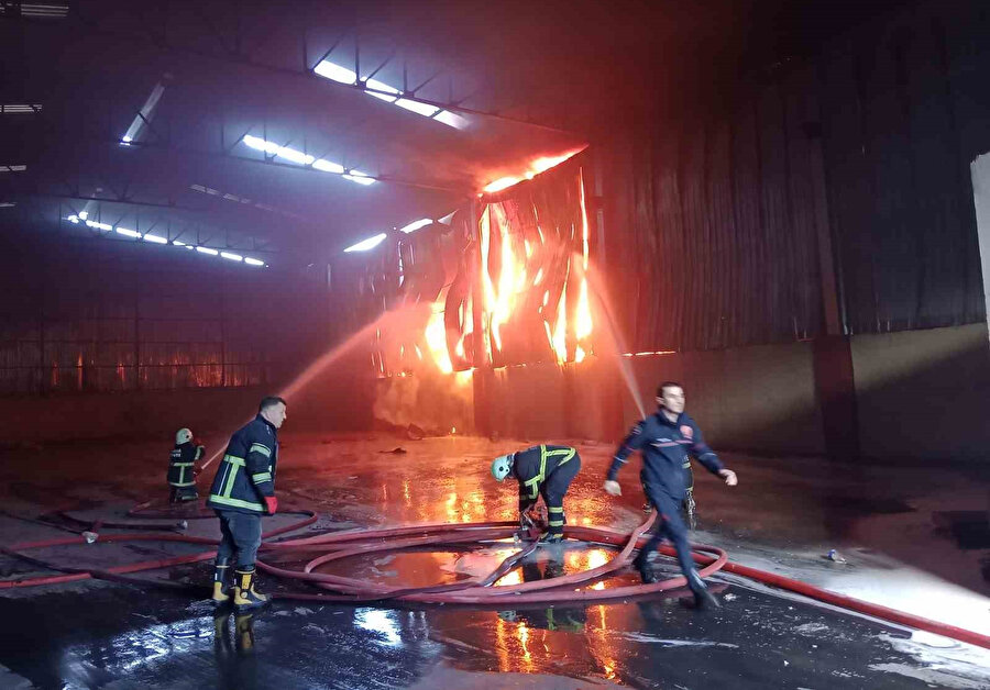 Ekipler yangının bitişikteki fabrikalara sıçramaması için önlem alıyor.