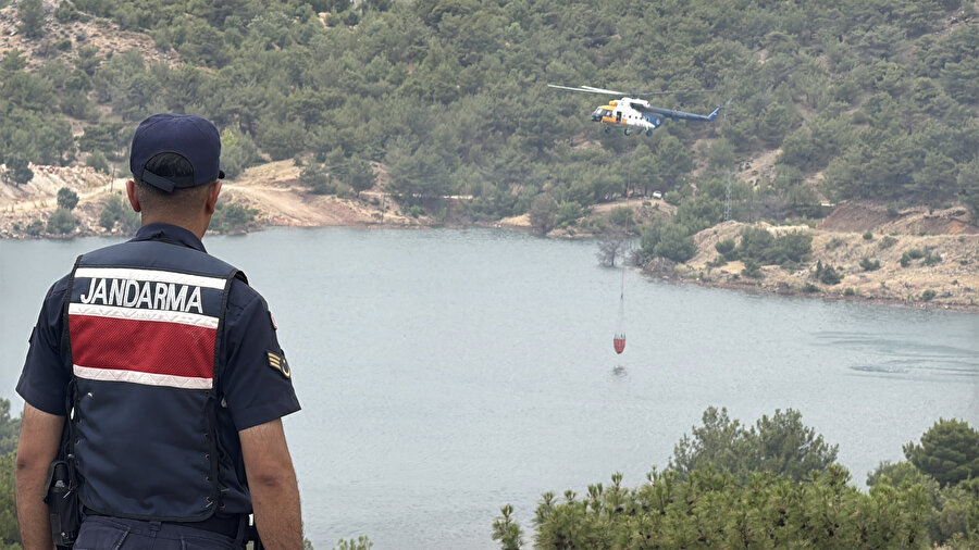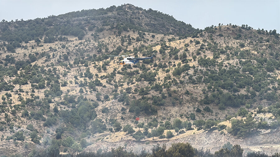 Gittikçe yayılan yangın için olay yerine helikopter desteği istendi. Kısa sürede olay yerine gelen Orman Genel Müdürlüğüne bağlı bir helikopter Akçalı Barajından su alarak alevlerin üzerine boşalttı. Dakikalarca süren söndürme çalışmalarında 200 dönümlük alan yandı.