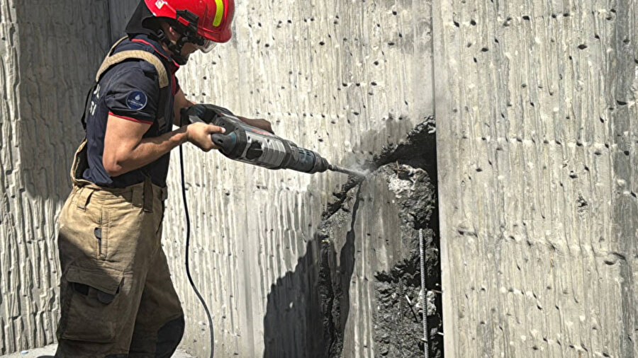 Bunun üzerine Beyoğlu Devriye Ekipler Amirliği polisleri, dar alandan içeri girerek duvarın arkasına geçti. Mahsur kalan kişiye ulaşan polis ekipleri adamın yarı çıplak, bitkin ve vücudunun çeşitli yerlerinde yara izleri olduğunu gördü. Ancak içerideki adam bitkin olması ve alanın dar olması nedeniyle dışarı çıkarılamadı. Kişinin bulunduğu yerden çıkarılması için itfaiye ekipleri, darbeli matkapla duvarı delmeye başladı. Yaklaşık 15 santimetre kalınlığındaki duvarı bir süre matkapla delen, ardından da beton kesme aletiyle çalışma yapan itfaiye ekibi, demirleri de keserek balyozla duvarı yıktı.