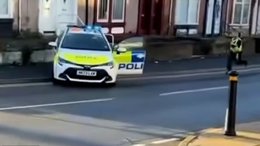 İngiltere’de polis, bir şüpheliyi yakalamaya çalışıyordu. Ancak kovalama başlamadan önce arabayı park eden ekip el frenini çekmeyi unuttu. Bu yüzden araç kendi kendine hareket ederek bahçe duvarına çarptı. O anlar kameralara yansıdı.