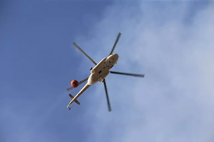 Sabahın ilk ışıklarıyla yangın söndürme helikopteri de çalışmalara destek vermeye başladı.