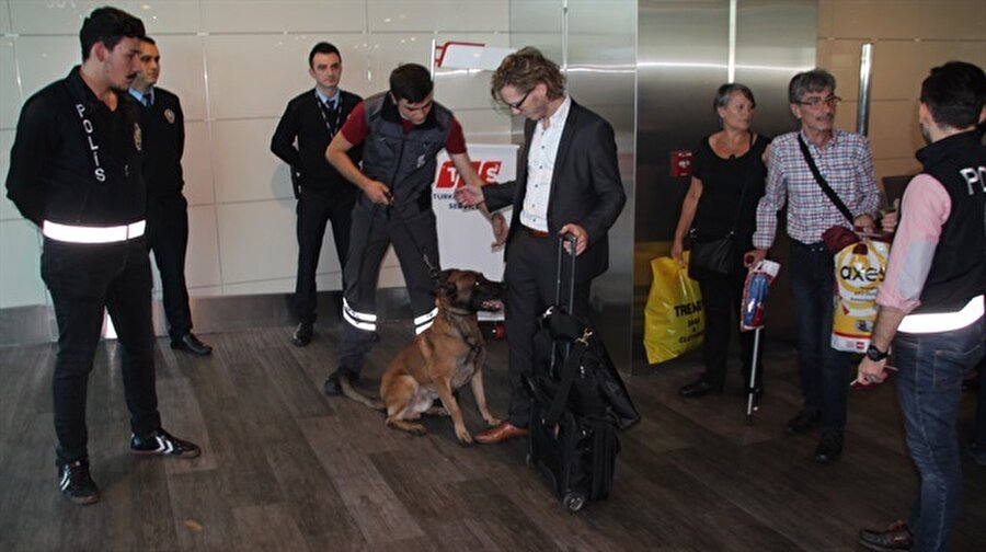 Saat 22.00 sıralarında Bremen’den kalkan uçakla Atatürk Havalimanı'ndan gelen Alman yolcular, pasaport kontrolünün ardından ülkeye giriş yaptıktan sonra gümrüklü alandaki bagaj bantlarında köpeklerle arandı.