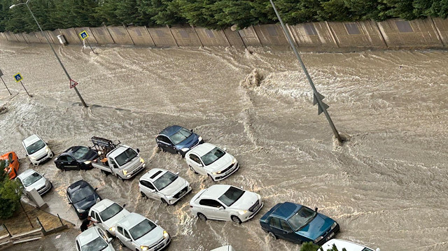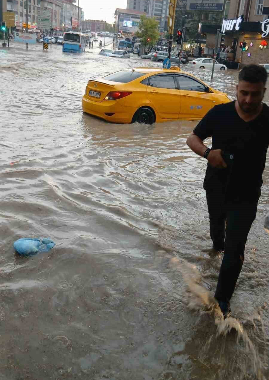 Ankara'da etkili olan sağanak nedeniyle cadde ve sokaklar suyla doldu.