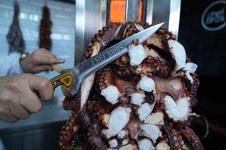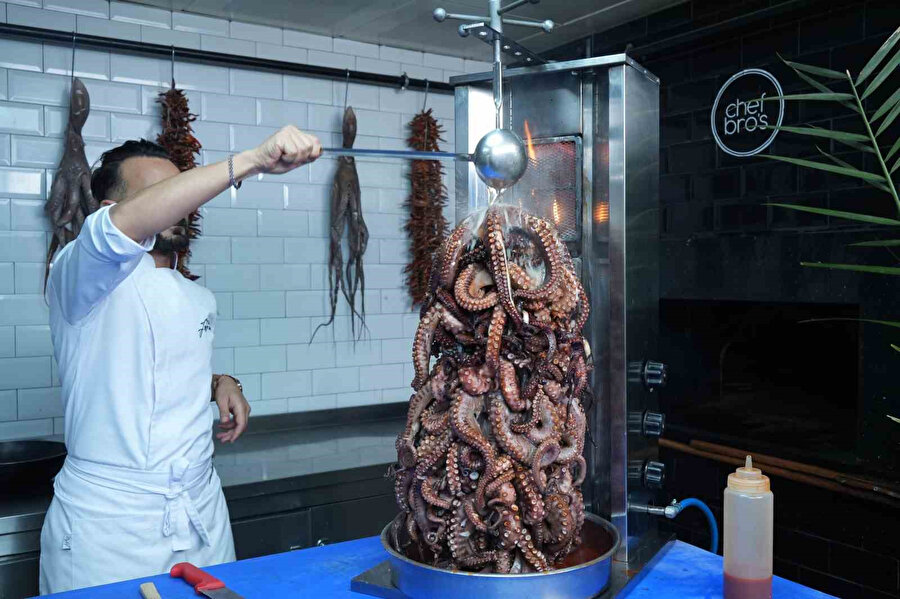 Başkentte deniz ürünleri restoranı işleten iki şef kardeş, ahtapottan döner yaptı.