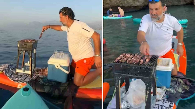 Antalya’da bir vatandaş, sabah sporu için çıktığı Stand Up Paddle (SUP) turunu unutulmaz bir deneyime dönüştürdü. Denizin ortasında SUP tahtasına kurduğu mangalla ciğer şiş pişirdi, sahildekiler ve diğer sporcular şaşkınlıkla izledi. Eşsiz gün doğumu manzarası eşliğinde ciğer ziyafeti veren Halil Yiğit’in bu sıra dışı etkinliği sosyal medyada da büyük ilgi gördü. Orman yangınlarına dikkat çekmek için denizde mangal yaptıklarını belirten Yiğit, sıradaki planlarını da açıkladı: "Sırada saç kavurma var!"