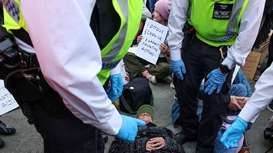 Londra Metropolitan Polisi, Palestine Action’ın yasaklı bir örgüt olduğunu öne sürerek, gruba destek vermenin suç kabul edildiği uyarısında bulundu. Londra Metropolitan Polisi,gözaltına alınan eylemci sayısının 355 olduğunu açıkladı.