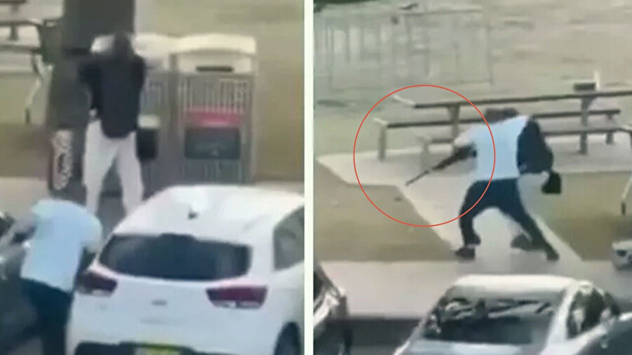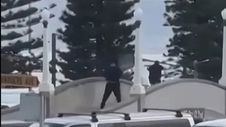 Daily Mail’de yer alan bir videoda bir vatandaşın plajın kuzey ucundaki otoparktan sessizce yaklaşarak silahlı kişilerden birini yere düşürdüğü görülüyor.