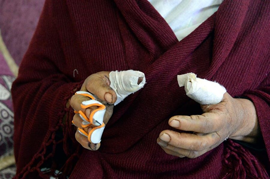 Olay günü sabah saatlerinde evinin arka bahçesinde tahtadan bir kutu gördüğünü anlatan Çilhoroz, "Bu da nedir' diye elime aldım. Çivilerini söktüm. İçinde teller vardı. 'Komşuya göstereyim' diye düşündüğüm sırada patladı. Patlama nedeniyle kırılan evin camları dizime battı. Elimin parmakları kırık. Sol gözümü kaybetme riskim var." dedi.