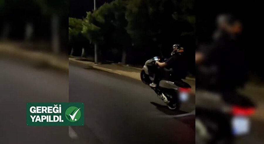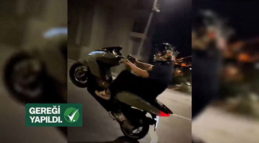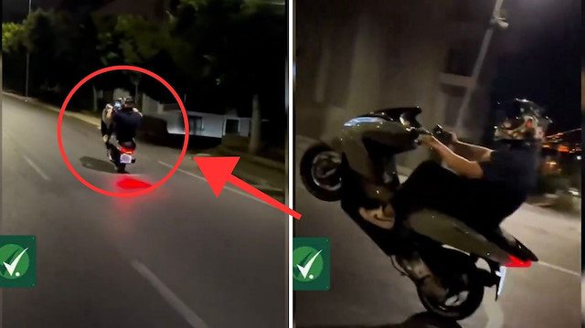 Bakan Yerlikaya’nın paylaştığı görüntülerde, Alanya’da motosikletin ön tekerini kaldırarak trafikte ilerleyen Ö.E. isimli sürücünün hem kendi canını hem de diğer vatandaşların güvenliğini tehlikeye attığı görüldü.