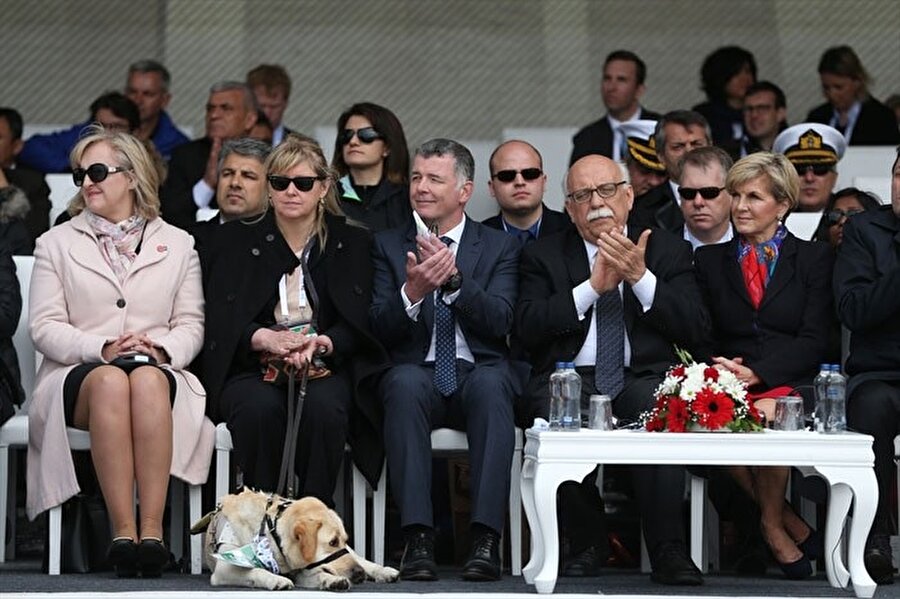 Çanakkale Kara Savaşları'nın 102. yıl dönümü dolayısıyla düzenlenen törenlere katılan Kültür ve Turizm Bakanı Nabi Avcı, İngiltere'nin Ankara Büyükelçisi Richard Moore ile sohbet edip, büyükelçinin görme engelli eşi Maggie Moore'un rehber köpeği "Star Morre" ile ilgilendi.