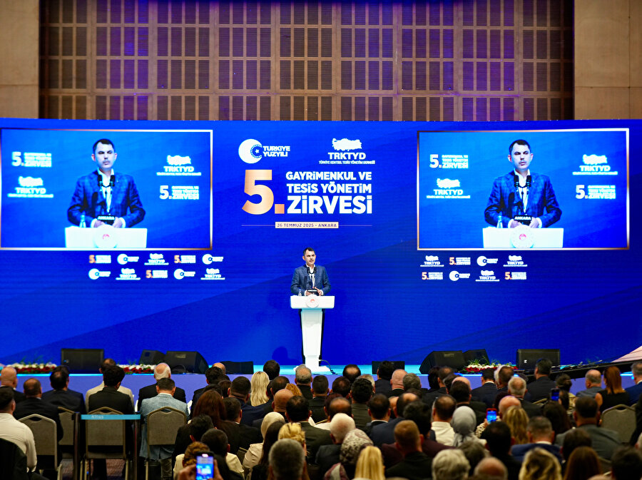 Türkiye Kentsel Tesis Yönetim Derneği (TRKTYD) tarafından Kızılcahamam'da otelde 5’inci Gayrimenkul ve Tesis Yönetim Zirvesi düzenlendi. Gayrimenkul ve tesis yönetimi alanındaki güncel gelişmeler, yasal düzenlemeler, dijitalleşme, sürdürülebilirlik ve akıllı bina sistemleri gibi birçok başlığın ele alındığı zirvenin açılışında konuşan Bakan Kurum, bakanlık olarak site yönetimi alanındaki çalışmaları yakından takip edip kolaylaştırıcı ve yön gösterici adımları kararlılıkla hayata geçirdiklerini anlattı. Tesis ve site yönetimi sektörünün hızla geliştiğine vurgu yapan Bakan Kurum, “İnsanımızın yaşam kalitesini arttırıyor, her yaştan insanımızın beklentilerine sizler cevap veriyorsunuz. Evimizi, bahçemizi, güvenliğimizi birer emanet olarak yüklenmek için çok değerli bir hizmet sunuyorsunuz. Tüm bunların yanında istihdam oluşturuyor, ekonomimize de bu manada katkı sunuyorsunuz” diye konuştu.