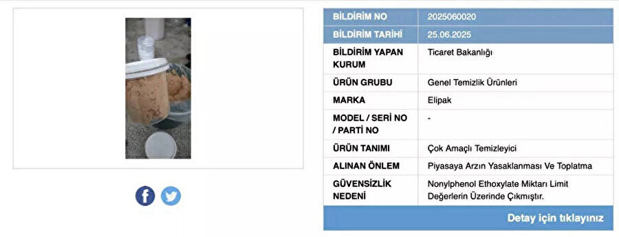 Bakanlık tarafından yapılan duyuruya göre, “Güvensiz Ürün Bilgi Sistemi” üzerinden yürütülen incelemelerde, Elipak marka sabunların insan sağlığı üzerinde olumsuz etkiler oluşturabilecek kimyasal maddeler içerdiği tespit edildi.