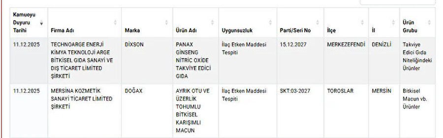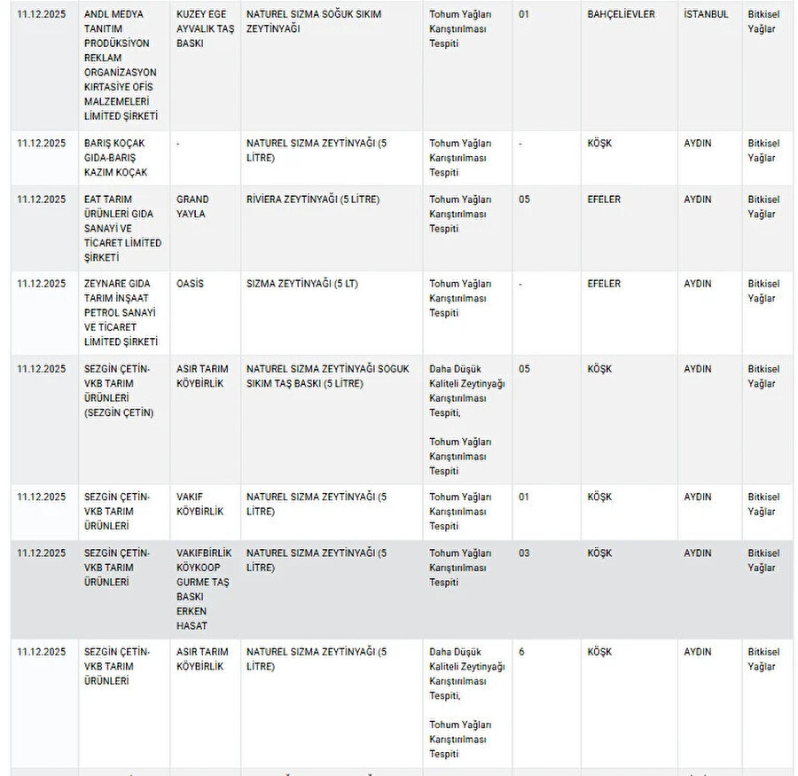 Taklit ve tağşiş yaptığı belirlenen markalar, Bakanlığın resmi internet adresi olan guvenilirgida.tarimorman.gov.tr üzerinden yayımlandı. Tarım ve Orman Bakanlığı, halk sağlığını korumak amacıyla denetimlerin aralıksız süreceğini vurgularken, vatandaşlara da ürün etiketlerini dikkatle incelemeleri çağrısında bulundu.
