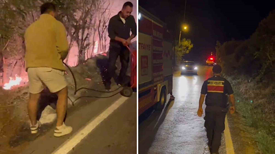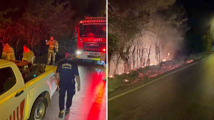 Balıkesir Büyükşehir Belediyesi’ne bağlı itfaiye ekipleri olay yerine ulaşana kadar, grup üyeleri çevrede bulunan bir otelin yangın söndürme tüpleriyle söndürme çalışmalarına destek verdi.