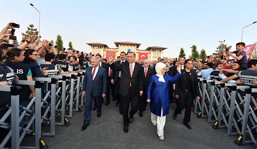 16 Türk devletini temsil eden askerlerin de bulunduğu 15 Temmuz Şehitler Abidesi'nin açılışı, Cumhurbaşkanı Erdoğan ve eşi Emine Erdoğan, TBMM Başkanı İsmail Kahraman ve Başbakan Binali Yıldırım tarafından yapıldı.