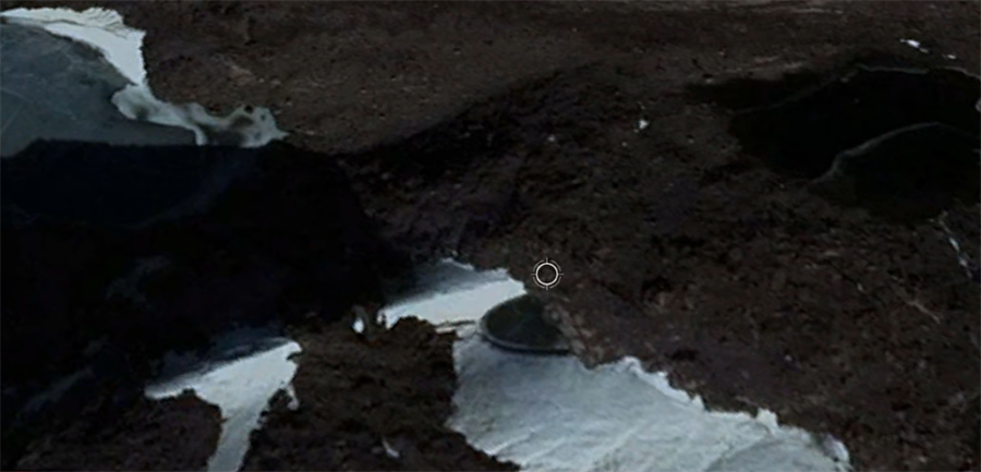 Antarktika'nın dağlık ve kayalık bir bölgesinde uydu fotoğraflarına yansıyan görüntülerde, yarım disk şeklinde devasa yapının gizemi merak uyandırdı. Bu tarz videolarla bilinen ünlü Youtube kanalı Secureteam10, Google Earth'e -66.273354, 100.984661 koordinatları yazıldığında söz konusu görüntüleri herkesin görebileceğini belirtti.Komplo teorisyenlerine göre bu yapı UFO, saklanan gizli bir teknoloji ya da gizli bir askeri üs olabilir. Diskin oldukça düzgün bir yapıda olduğunu belirten teorisyenler bunun doğal yollarla oluşamayacağı fikrini savunuyor. Videoda son yıllarda birçok Amerikalı politikacı ve üst düzey yetkilinin Güney Kutbu'na gizemli ziyaretler yaptığı da hatırlatılıyor. 23 Ocak'ta yayınlanan klip 342 binden fazla kez izlendi.