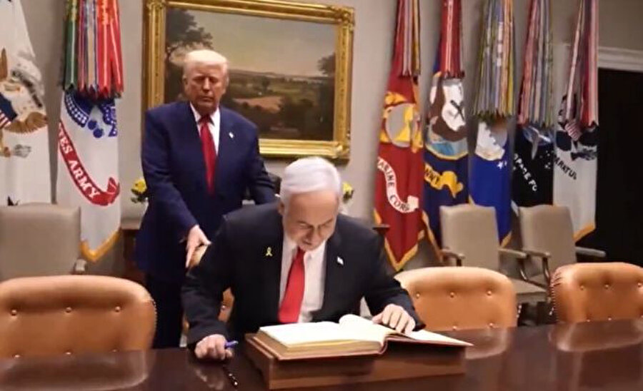 Trump'ın Netanyahu'nun oturmasına yardımcı olmak amacıyla sandalyesini çekmesi gündem oldu.