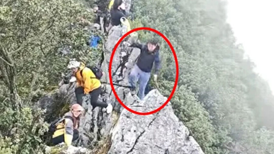 Çin’in Guang’an kentindeki Huaying Dağı’nda selfie çekmeye çalışan bir turist, ayağının altındaki kayanın kırılmasıyla yaklaşık 15 metre yuvarlandı. Olay anı görüntülere yansırken çevredeki yürüyüşçüler büyük panik yaşadı.