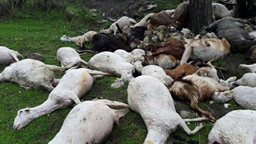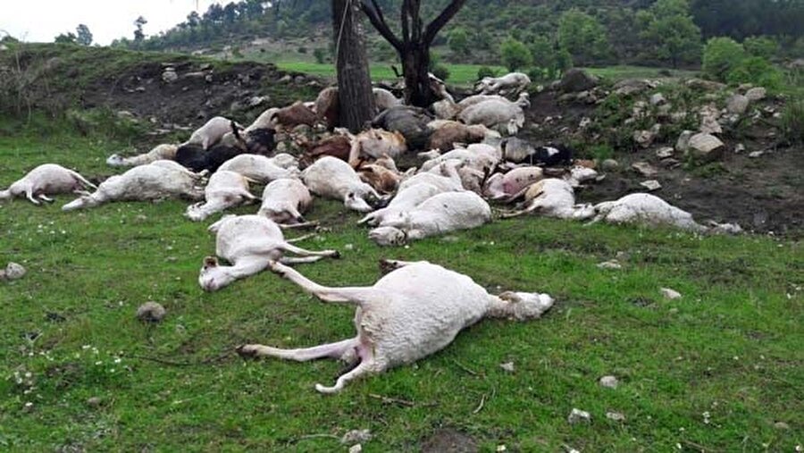 Kılıç, o sırada yanında bulunan oğlu ile birlikte ağaç altına sığınırken, yıldırım düşmesi sonucu 52 küçükbaş hayvan telef oldu.