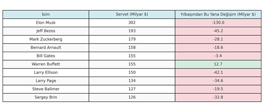 Borsalarda yılbaşından bu yana yaşanan sert dalgalanmalar, dünyanın en zengin 10 isminden 9’unun servetini eritti. Trump'la ilişkisi bulunmayan tek isim olan Buffett ise servetini artırdı