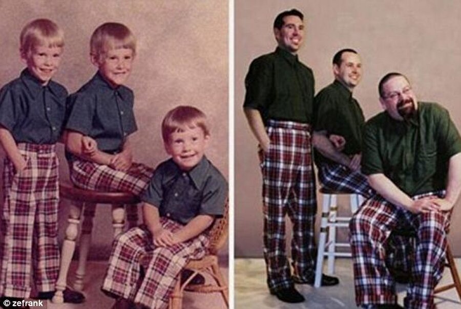 Eski fotoğrafları yeniden çekmek trendini özetlersek, çocuklukta çektirilen fotoğrafların ayni mizansenleriyle, eşek kadar olduktan sonra tekrar çektirilmesi durumu diyebiliriz. Kabul edelim bu güne kadar rastladığımız bir sürü saçma sapan internet akımı içerisinde en hoşumuza gideni ya da en az gıcığımıza gidenidir.