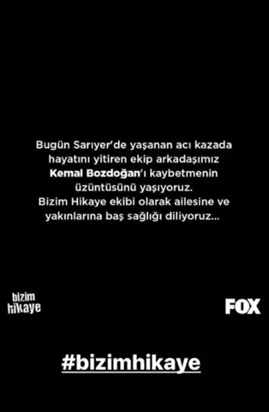 FOX TV ekranlarında yayınlanan 'Bizim Hikaye' dizisinin setinde yaşanan ölüm, tüm seti yasa boğdu. Çekildiği alana jeneratör ve ışık taşıyan kamyonun devrilmesi sonucu sürücü Kemal Bozdoğan hayatını kaybetti.