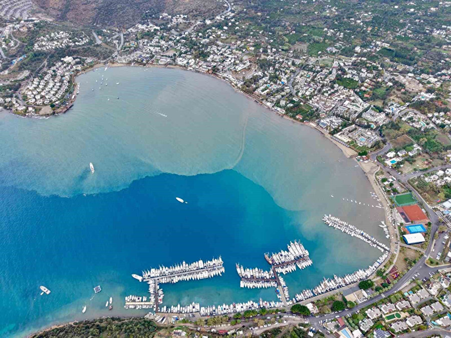 Muğla’nın Bodrum ilçesinde, sabah saatlerinde etkisini artıran sağanak yağışın ardından kıyı şeridinde belirgin bir renk farklılığı ortaya çıktı. Yağış sonrası derelerden taşınan çamur yüklü suyun denize karışmasıyla kıyı bölgesinde kahverengi bir tabaka oluştu; açık deniz ise mavi rengini korudu.