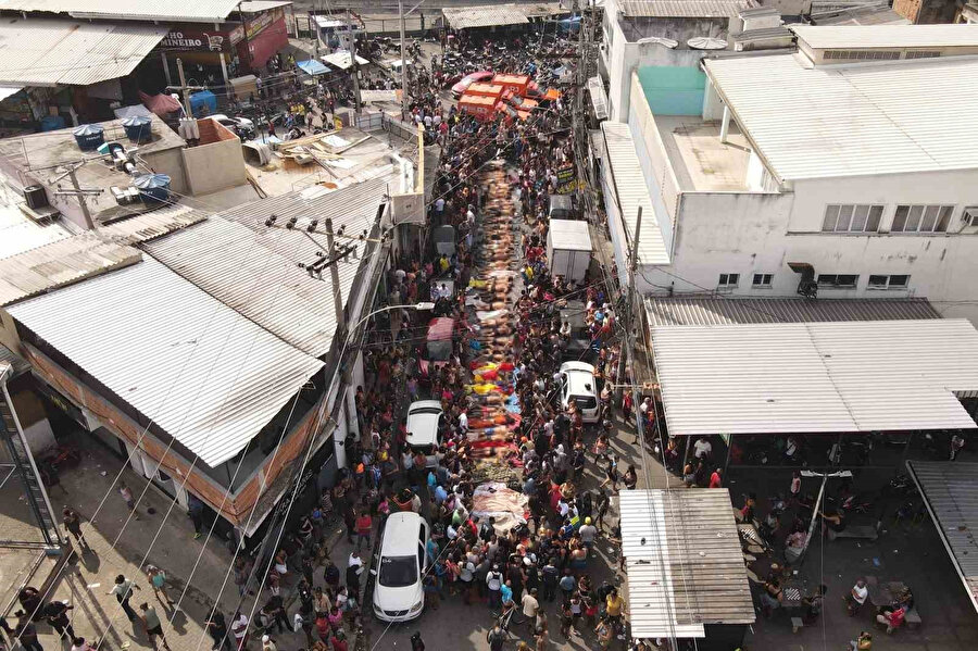Brezilya’da polisin 28 Ekim tarihinde uyuşturucu çetelerine karşı yürüttüğü kapsamlı operasyondaki can kaybı yükselmeye devam ediyor. Rio de Janeiro polisi, "favela" adlı gecekondu mahallelerine düzenlenen operasyondaki can kaybının 4’ü polis 132’ye yükseldiğini açıkladı. Rio halkı, gece boyunca cesetleri şehirdeki Penha Meydanı’nda toplarken, bazı öfkeli Brezilyalılar ise polisi toplu infaz gerçekleştirmekle suçladı.