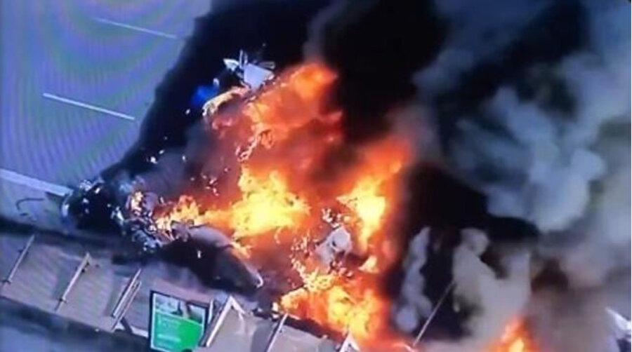İlk belirlemelere göre uçağın caddede bulunan bir otobüse çarptığı aktarıldı. Televizyon görüntülerinde kazanın ardından yangın çıktığı görülüyor.