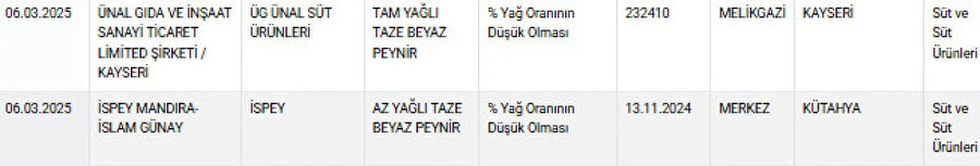 Bakanlık hileli olduğu tespit edilen peynir markalarını tüketicilere duyurdu. İşte tespit edilen 6 peynir markası: