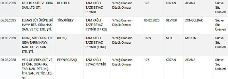 Tarım ve Orman Bakanlığı, gıda güvenliğini sağlamak amacıyla düzenlediği denetimlerde, taklit ve tağşiş yaptığı belirlenen yeni peynir markalarını açıkladı. Bakanlık, ülke genelindeki denetimlerini sürdürürken, son güncellenen listede 6 beyaz peynir markasının ürünlerinde usulsüzlük tespit etti.