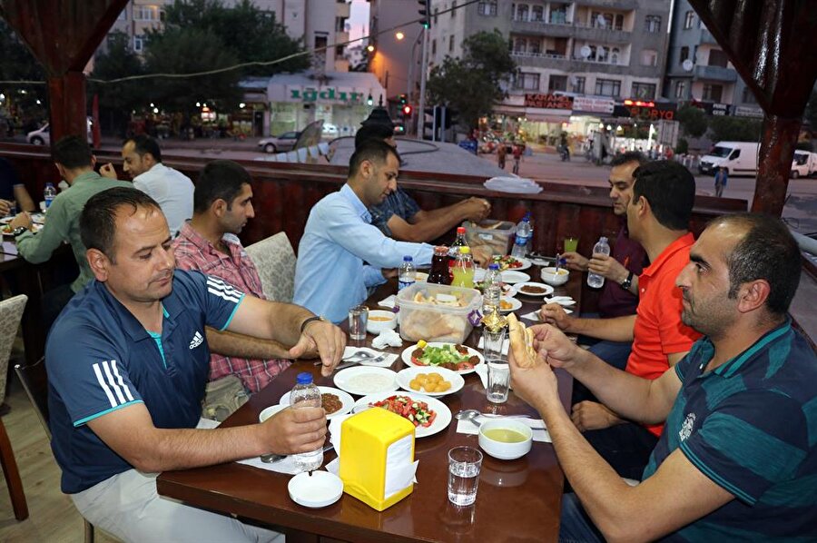 Sünni mezhebine mensup olan vatandaşların ezanın okunmasıyla oruçlarını açıp yemeğe başlamalarının ardından Caferi mezhebinin ezanı okunuyor.