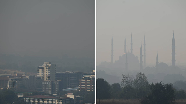 Geniş bir alanda devam eden yangın nedeniyle oluşan yoğun duman ve is, rüzgarın da etkisiyle yaklaşık 50 kilometre uzaklıktaki Edirne şehir merkezine ulaştı.