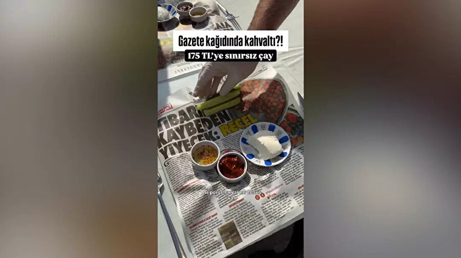 Sizce uygun mu? Bir işletmenin gazete kağıdı üzerinde verdiği kahvaltının fiyatı tartışma konusu oldu