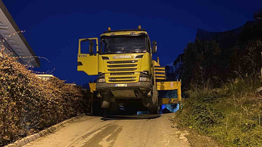 Bursa'nın Mudanya ilçesinde korku dolu anlar yaşandı. Vinç üzerinde taşınan iş makinesi büyük bir gürültüyle yere düştü. Olay sırasında kepçenin boş olması olası bir felaketin önüne geçti.