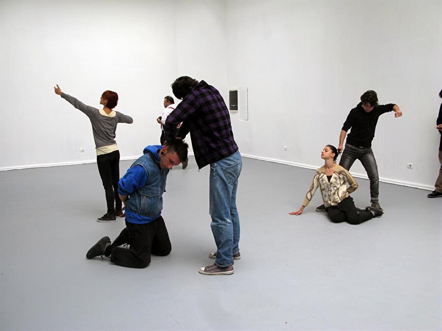 Manuel Pelmuş ve Alexandra Pirici'nin performatif işi, modernitenin söylemler tarihi ile önemli anları arasında bir diyalog oluşturarak modern sanata özgün bir bakış sunar. Seçili modern sanat eserlerini beden hareketleri ve anlatımlarla canlandırmaya dayalı olan performans, SALT Galata'da Mustafa Karadağ, Buyan Yağmur Memişoğulları ve Müge Olacak tarafından Türkçe olarak gerçekleştirilecek.
