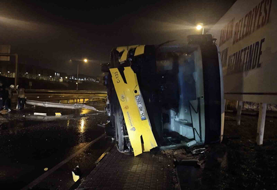 İstanbul Çekmeköy’de sabah erken saatlerde ilerleyen özel halk otobüsü, yağış nedeniyle kayganlaşan yolda hâkimiyetini kaybederek bariyerleri aşıp yan yola devrildi.