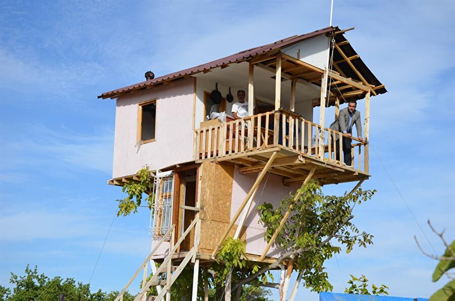 Ceviz ağacının tepesine yaptığı dubleks evde yaşıyor