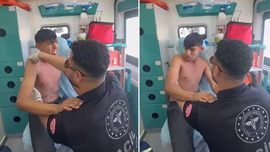 Kumlu ilçesinde yaşayan Hüseyin Kutaç, serinlemek için gittiği havuzda yüzerken düşerek omzunu çıkardı. Omzu çıktığı için acılar içinde kıvranan Kutaç’ı gören arkadaşları durumu 112 Acil Çağrı Merkezi’ne bildirdi. İhbar üzerine olay yerine gelen 112 ekibinde görevli sağlıkçı Rahim Cünedioğlu, Kutaç’a ilk müdahaleyi ambulansta yaptı. Sağlıkçı Cünedioğlu’nun tek hamlede çıkan omzu yerine oturttu ve yere düşerek omzu çıkan Kutaç rahat nefes aldı.