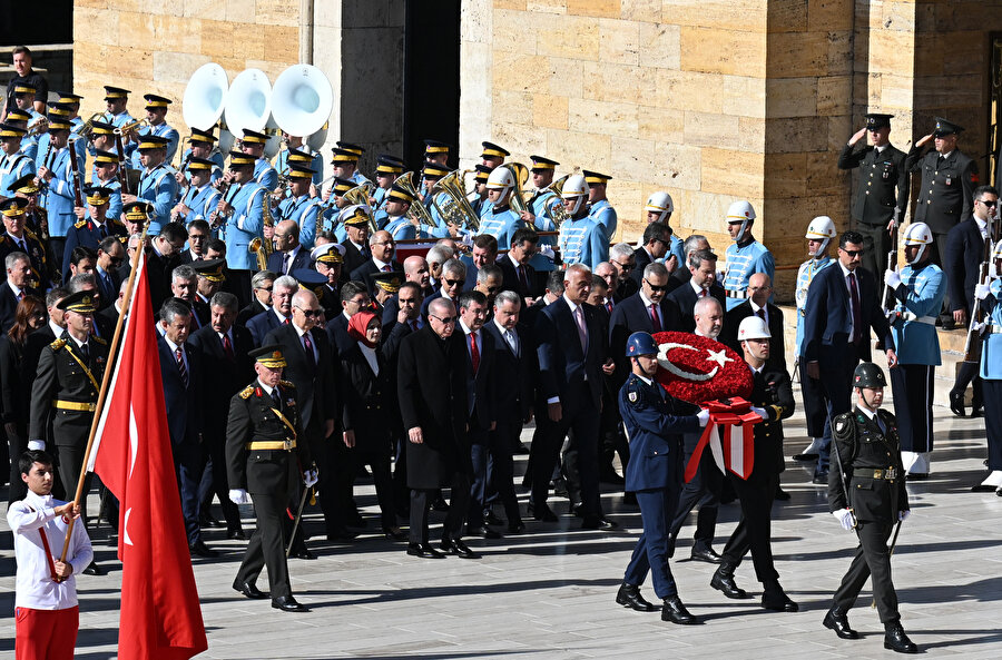 29 Ekim Cumhuriyet Bayramı ve Cumhuriyet'in ilanının 102'nci yıl dönümü kutlamaları kapsamında ilk tören, Anıtkabir'de düzenlendi. Tören, devlet erkanının Aslanlı Yol'da yürüyüşüyle başladı.
