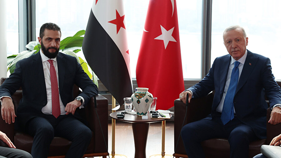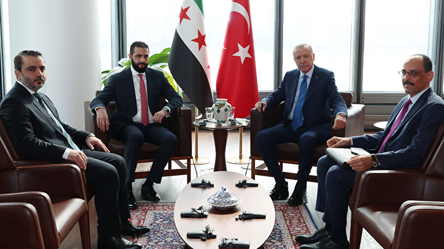 Cumhurbaşkanı Erdoğan, BM 80. Genel Kurulu için bulunduğu New York'taki Türkevi'nde Suriye Cumhurbaşkanı Şara ile bir araya geldi.