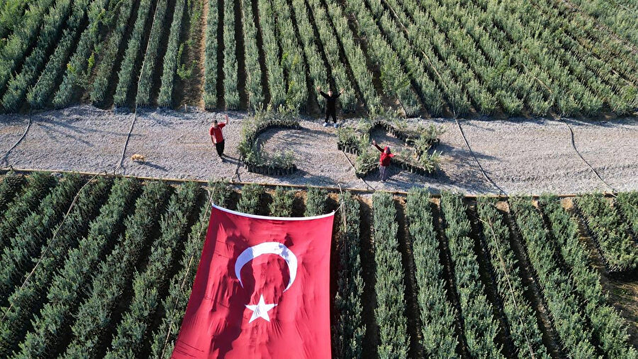 Cumhuriyetin 101. yılı için zeytin fidanlarıyla Türk Bayrağı oluşturdu
