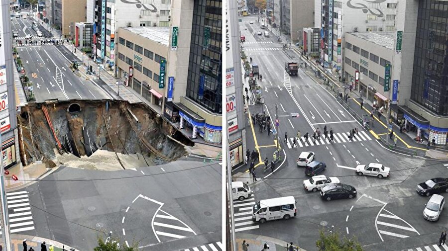 Japonya'nın güneybatısındaki Fukuoka kentinde çöken ve 30 metre genişlikte delik açılan otoyol, Salı günü yeniden açıldı. Çukur, suya dayanıklı özel bir çimento formülü sayesinde 48 saatte dolduruldu.