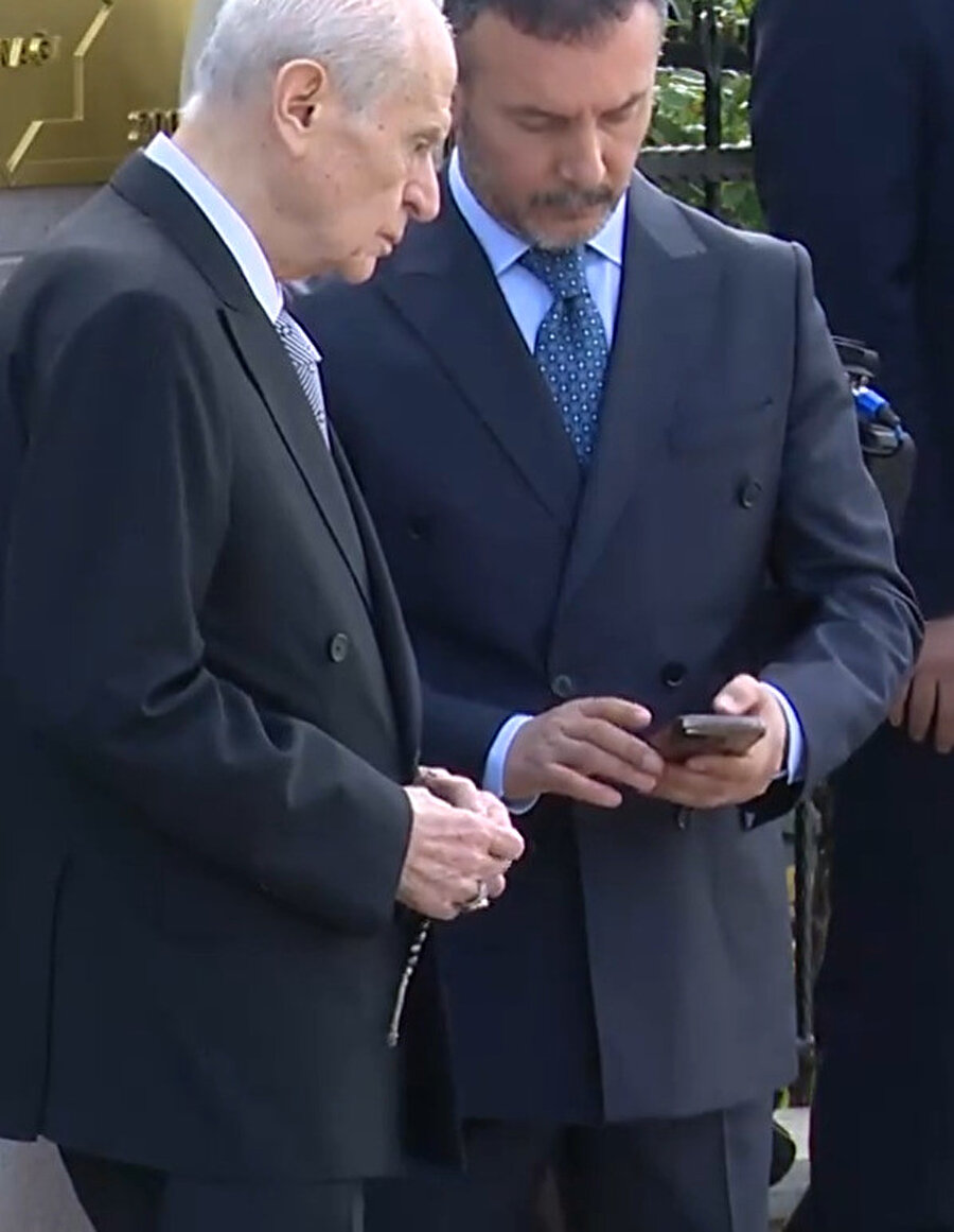 MHP Lideri Devlet Bahçeli, ameliyatının ardından ilk kez Cumhurbaşkanı Erdoğan'la görüşecek. Görüşme öncesi konutuna gelen Bahçeli, kapıda bekleyen basın mensuplarını selamladı. Bahçeli'nin konutunun önünde ittifak ortağı Erdoğan'ı tespih çekerek beklemesi ise dikkatlerden kaçmadı.