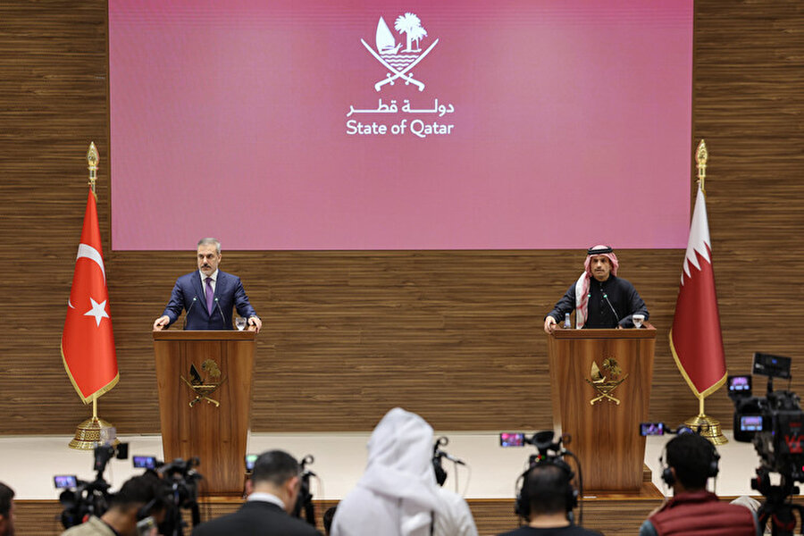 Bakan Fidan, Katar Başbakanı ve Dışişleri Bakanı Muhammed bin Abdurrahman Al Sani ile Doha'daki ortak basın toplantısında konuştu.