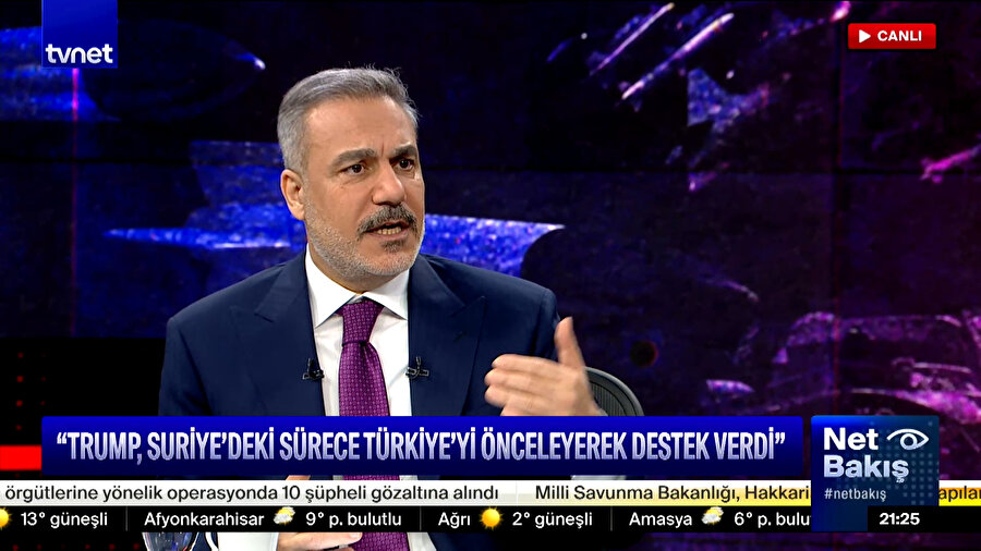 Dışişleri Bakanı Hakan Fidan, TVNET'te yayınlanan Net Bakış Özel programında dış politikadaki gündemi değerlendiriyor. Fidan, " Atılması gereken adımlar var bununla ilgili gerekli çalışmaları yapıyoruz." dedi.